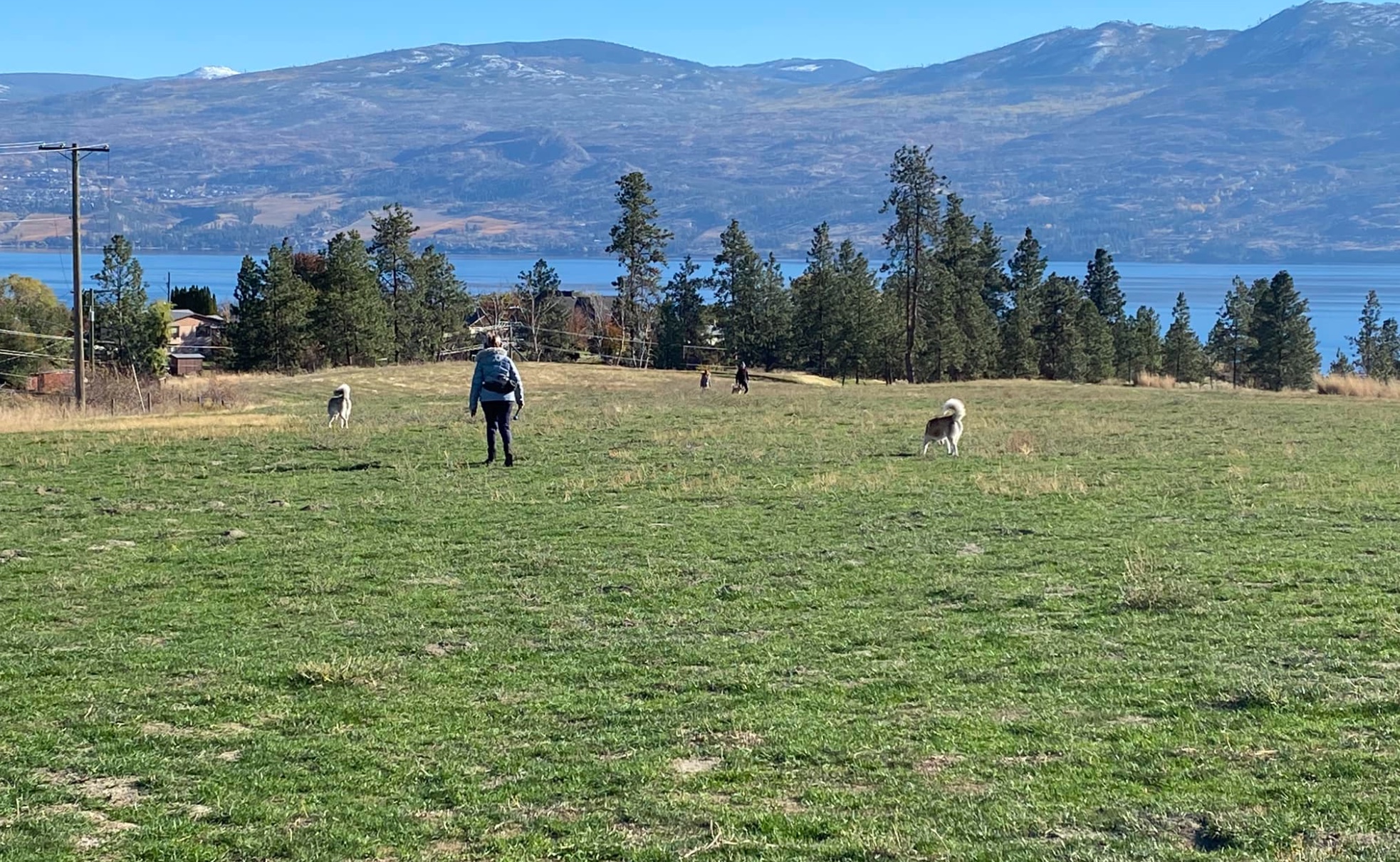 “Pleasant fall afternoon with Crystal Darche and our crazy huskies playing and fetching balls in an open field; impossible without the control collars [ e-collars].